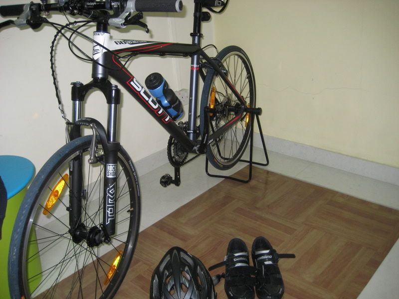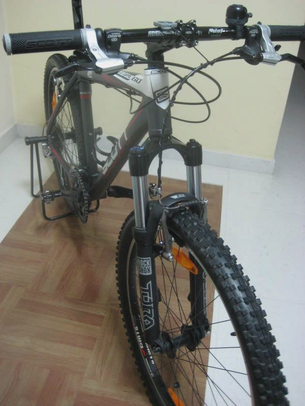 Kui Sulle pakutakse kasutatud Scott Scale60 2007-ratast, halli raamiga, siis see võis veel esmaspäeval minu oma olla :( Tagarehv on Racing Ralph ja ees kulunud Oxyd, pöiad on mustad. Taga on mitte-kähku eemaldatav must plast-porilaud, esimest "sündmushetkel" polnud. Must sadul, metallist tavapedaalid, mustad vändad pedaali juurest kulunud. Rock Shox Tora must amort võib olla ka "lisa"-Polar anduriga vasakul, teisel pool on Cateye andur, odo ise oli raami peale kinnitatud kolla-rohelise isoleeriga. Võib-olla "pakutakse" ka kaht pudelihoidjat, hõbedane ning must. Tagakassett, kett ja esimene keskmine hammasratas on värskelt vahetatud - väga hästi vahetab käike! Piduritrossid on otsast lõpuni mustas kõris raami all. Esimese pudeli all on raami küljes kummiga kinnitatud lisaporilaud. Raamil on korralik värvikraabe, sest pidurikäepide jättis kukkumisel oma jälje. Juhtraual on lambihoidja kahe hõbeteibiringi vahel, et kaardialus paremini kinnituks. Ühel rattal on oranzhid reflektorid, teisel pole. Ratas näeb välja suht. sarnane: i2.photobucket.com i2.photobucket.com www.fotoluks.ee Ärge nüüd kohe maha laske, et ma end siin oma asja ajasin. Seekord liigun sõbra rattaga. Kristjan, Jessorient |